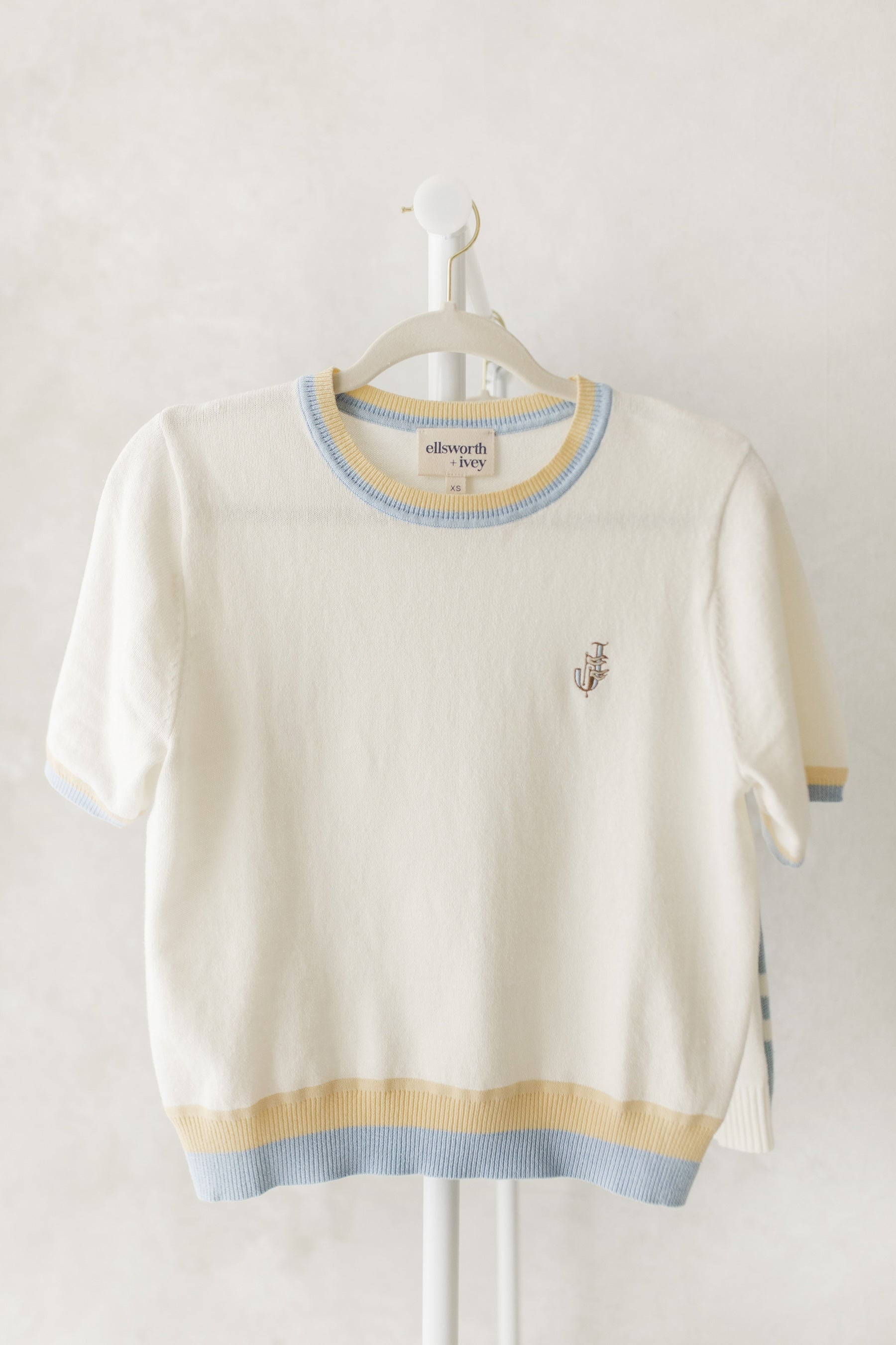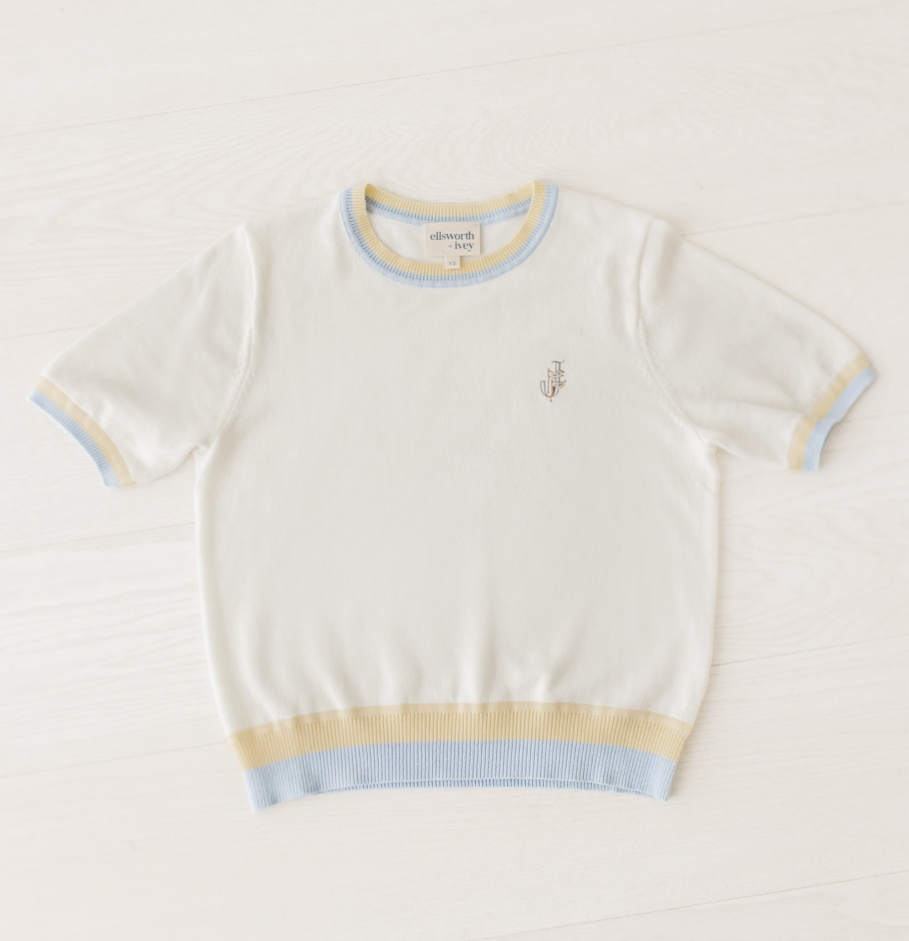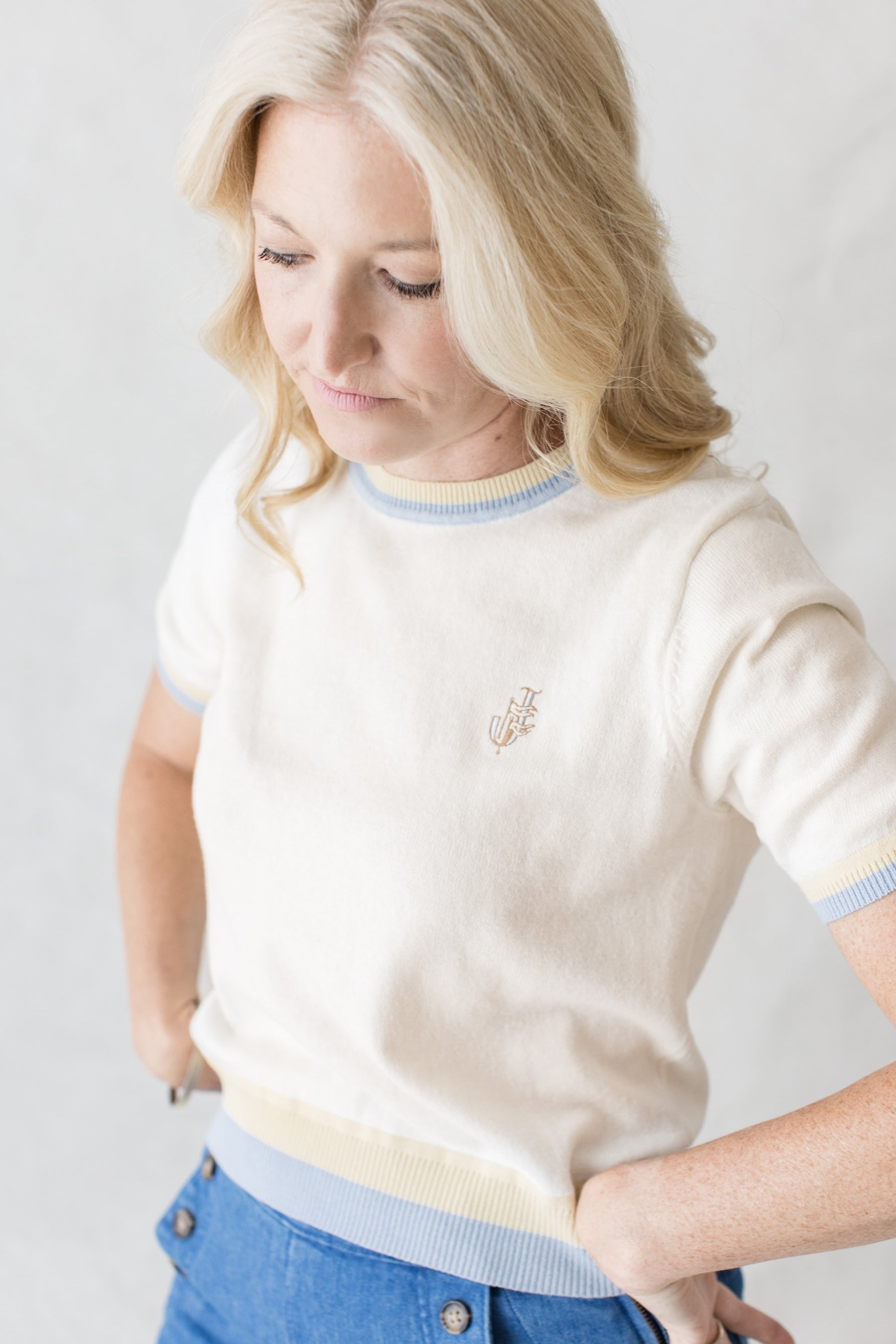 There's something magical about a perfectly tied bow—it whispers of special moments, gentle care, and timeless grace. The Graceful Bow Pullover captures that tender sentiment in luxurious chain stitched detail against our signature powder blue. Like the yellow flags that mark each precious achievement in Jack's world, this delicate bow reminds us that every day holds new possibilities for discovery and joy. Crafted with attention to detail, this piece features thoughtful striped accents that frame your story beautifully. Whether you're creating new memories or honoring cherished ones, this sweater wraps you in warmth that goes far beyond the fabric itself—embodying Jack's charismatic spirit and his family's commitment to embracing the beauty of Down Syndrome with sophistication and wonder.